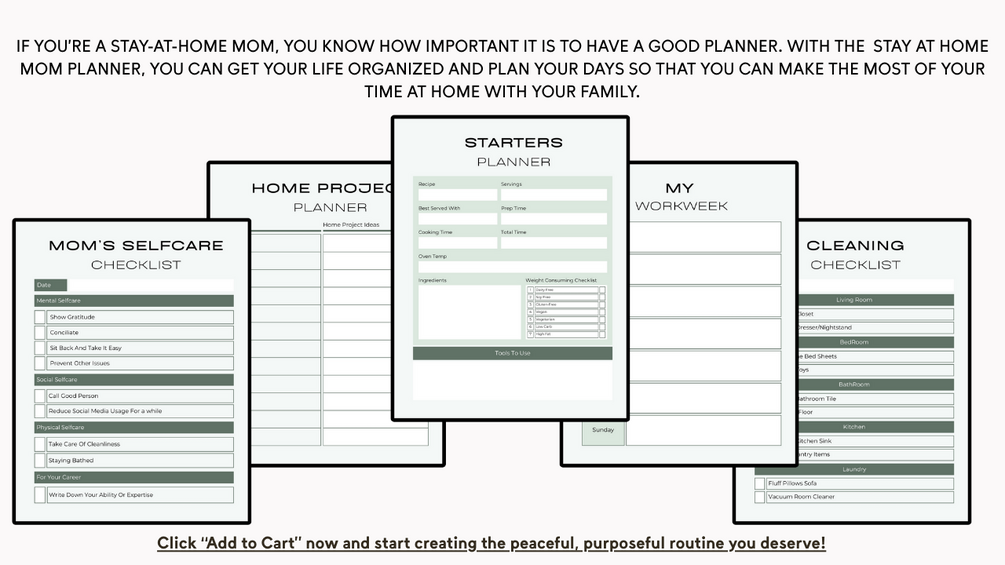 This planner is packed with features that will help you keep track of your days, schedule your activities, and get things done. The Stay At Home Mom Planner makes it easy to stay on top of everything and make the most of your time at home.